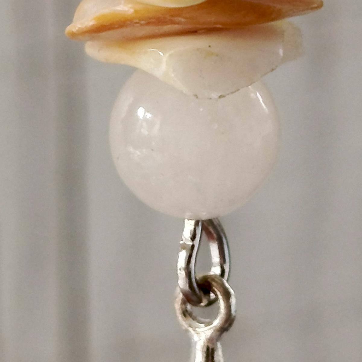 Сочетание ракушек и белого оникса считается гармоничным и мощным, поскольку объединяет энергии воды и земли, создавая баланс между эмоциональной мягкостью и защитной силой. Ракушки символизируют воду, женскую энергию, эмоциональное исцеление, интуицию и красоту, помогая успокоить ум, укрепить связь с подсознанием и подчеркнуть чувственность. Белый оникс, связанный с землей и духовной сферой, обладает очищающими и защитными свойствами, способствует ясности ума, концентрации и духовному росту, а также укрепляет силу воли.