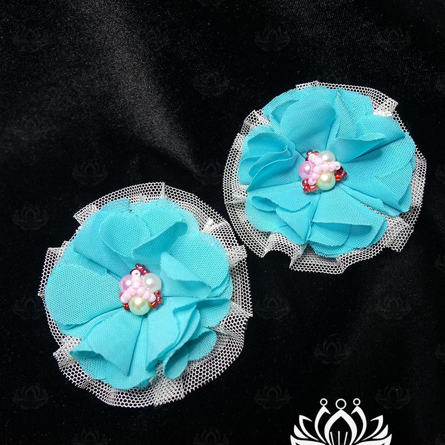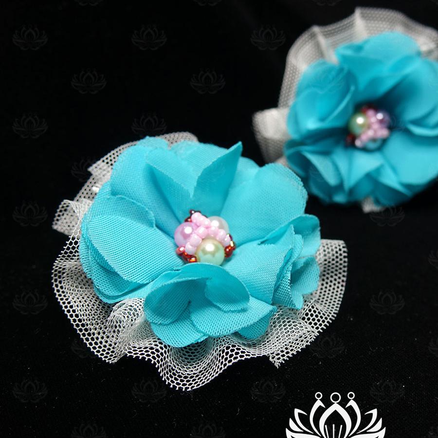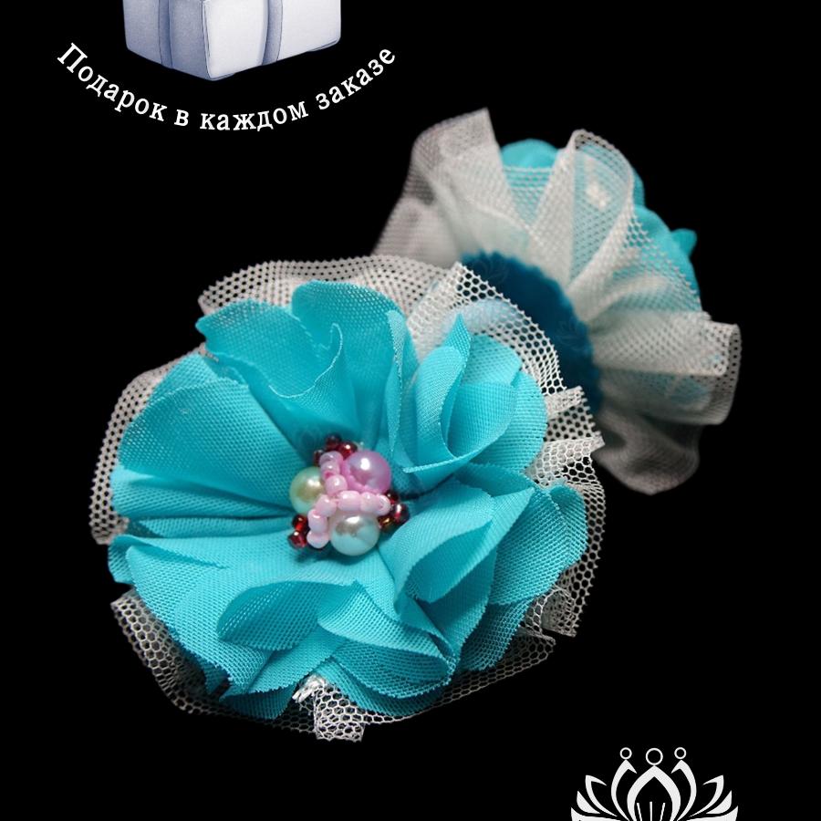 LenaLentaLepestok представляет Набор авторских резинок для волос "Незабудка"; нежный бирюзовый цвет; в комплекте 2 штучки.