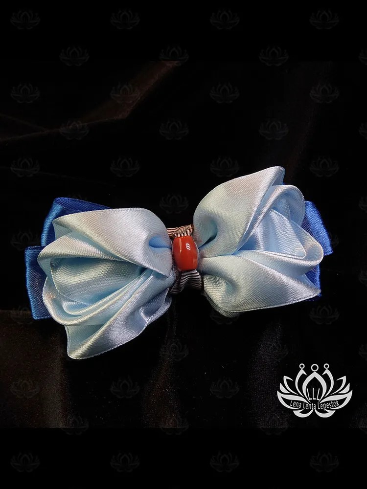 Ищете изящный и неповторимый аксессуар для волос? Представляем эксклюзивную резинку для волос ручной работы — «Бант „Облако“» в нежном голубом оттенке. Это единственный экземпляр, созданный с особым вниманием к деталям в технике канзаши.