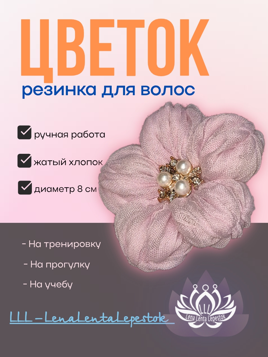 Представьте, как этот цветок украсит ваши волосы, придавая образу свежесть и женственность. Он станет идеальным дополнением к летнему платью, джинсам с футболкой или элегантному вечернему наряду. Резинка надежно фиксирует волосы, не повреждая их, и позволяет создавать разнообразные прически – от простого хвоста до сложной укладки.