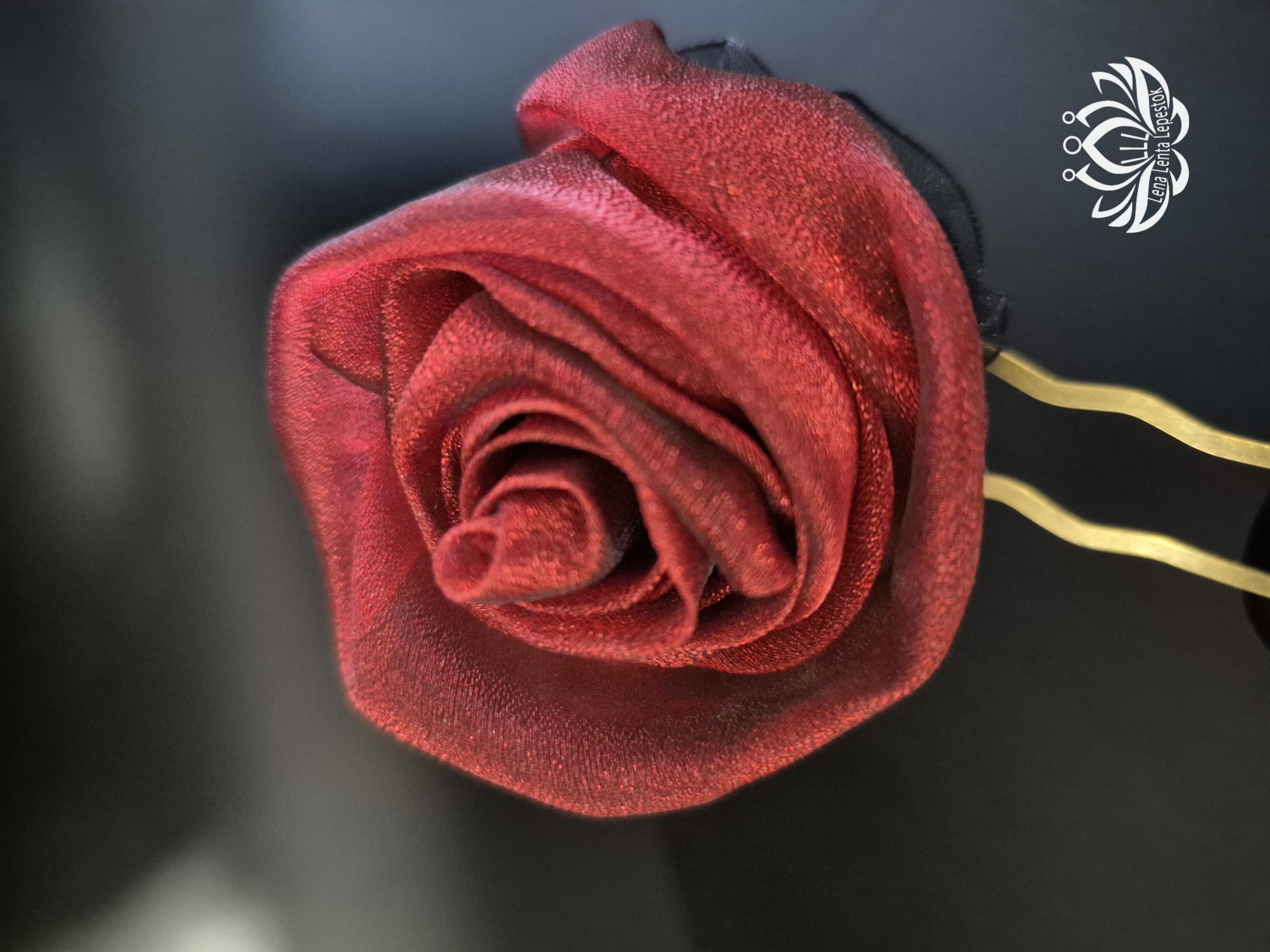 - Эксклюзивная шпилька для волос «Роза» (бордовый меланж).