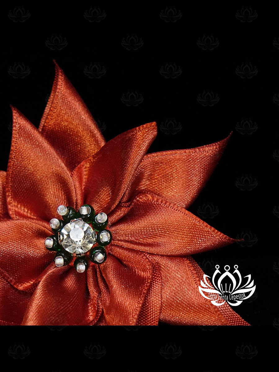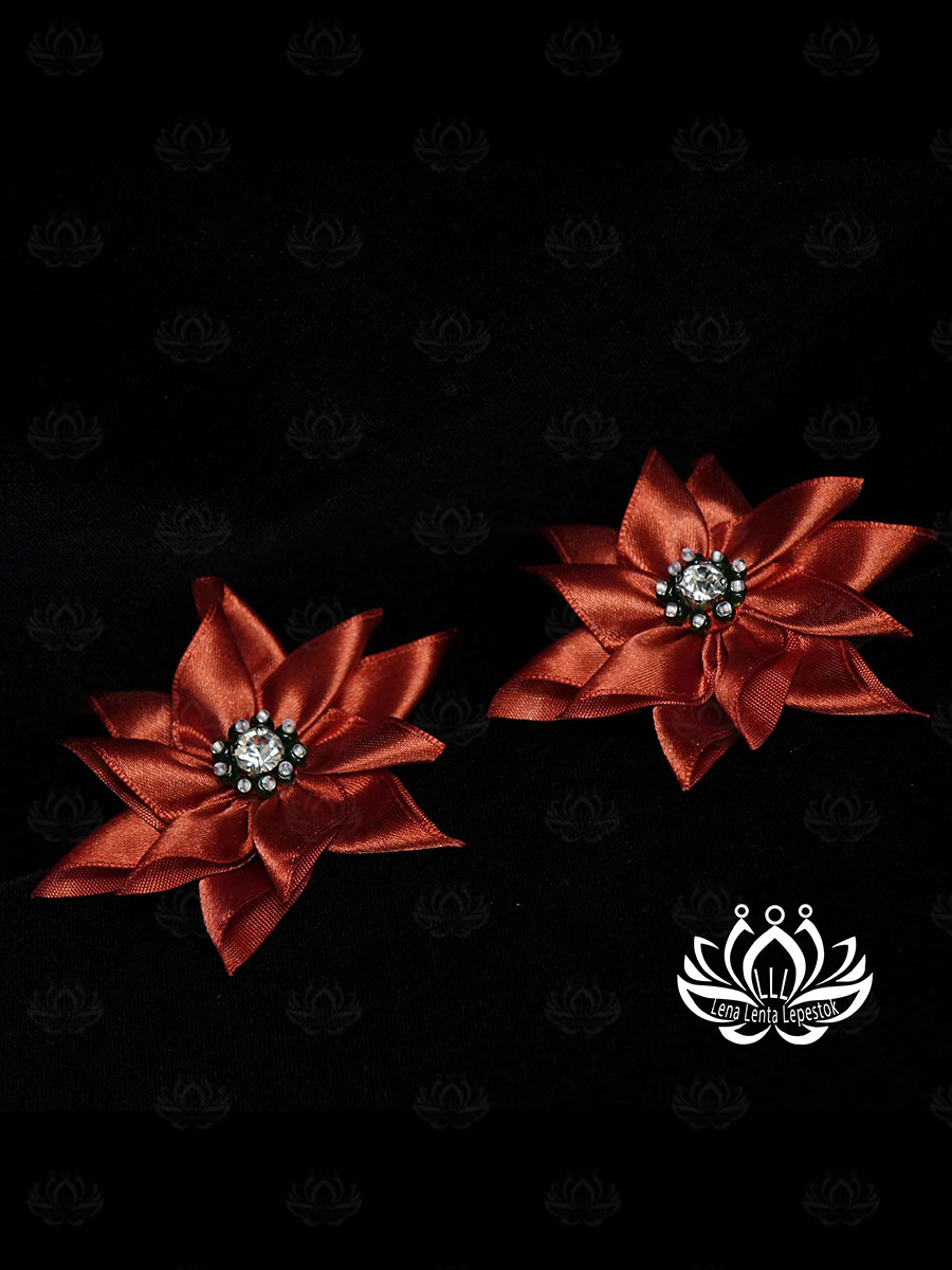 - Особенности: в центре каждой шпильки — самодельный кабошон, лепестки остроугольной формы.