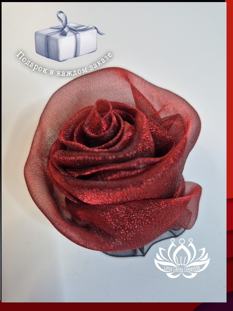 Изящная, маленькая брошь-заколка "Роза", бордового оттенка, создана вручную из нежной органзы, которая завораживает своей переливчатой текстурой и роскошным блеском. Ее сияние просто невозможно не заметить!