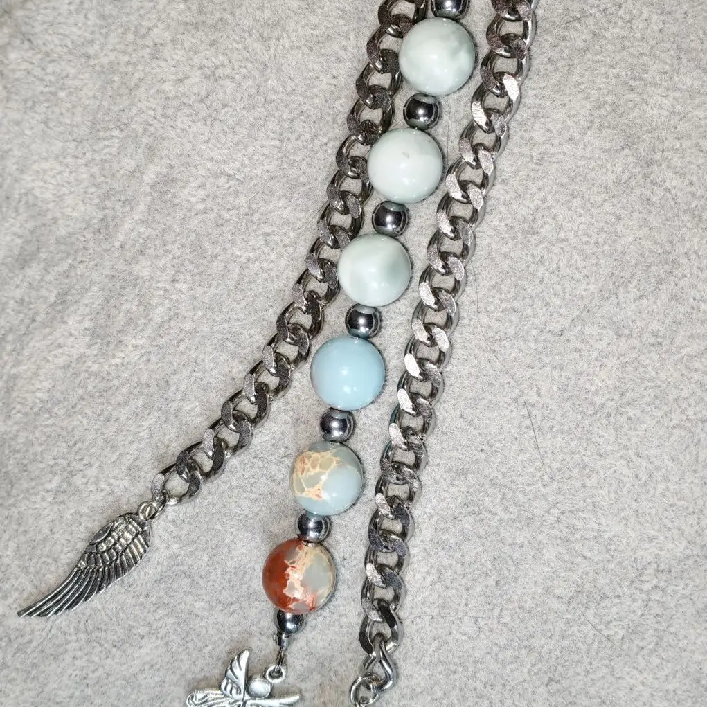 Обвес на сумку "Защита ангела" из ангелита и варисцита, длина 15 см