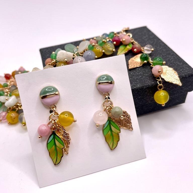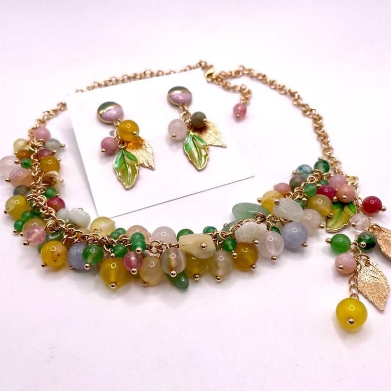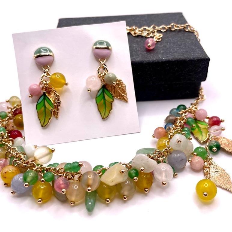 Комплект «Золотая осень» - колье и сережки из натурального агата, кварца, авантюрина. Длина колье 42 см. + удлиняющая цепочка. (При необходимости смогу сделать под ваш размер)