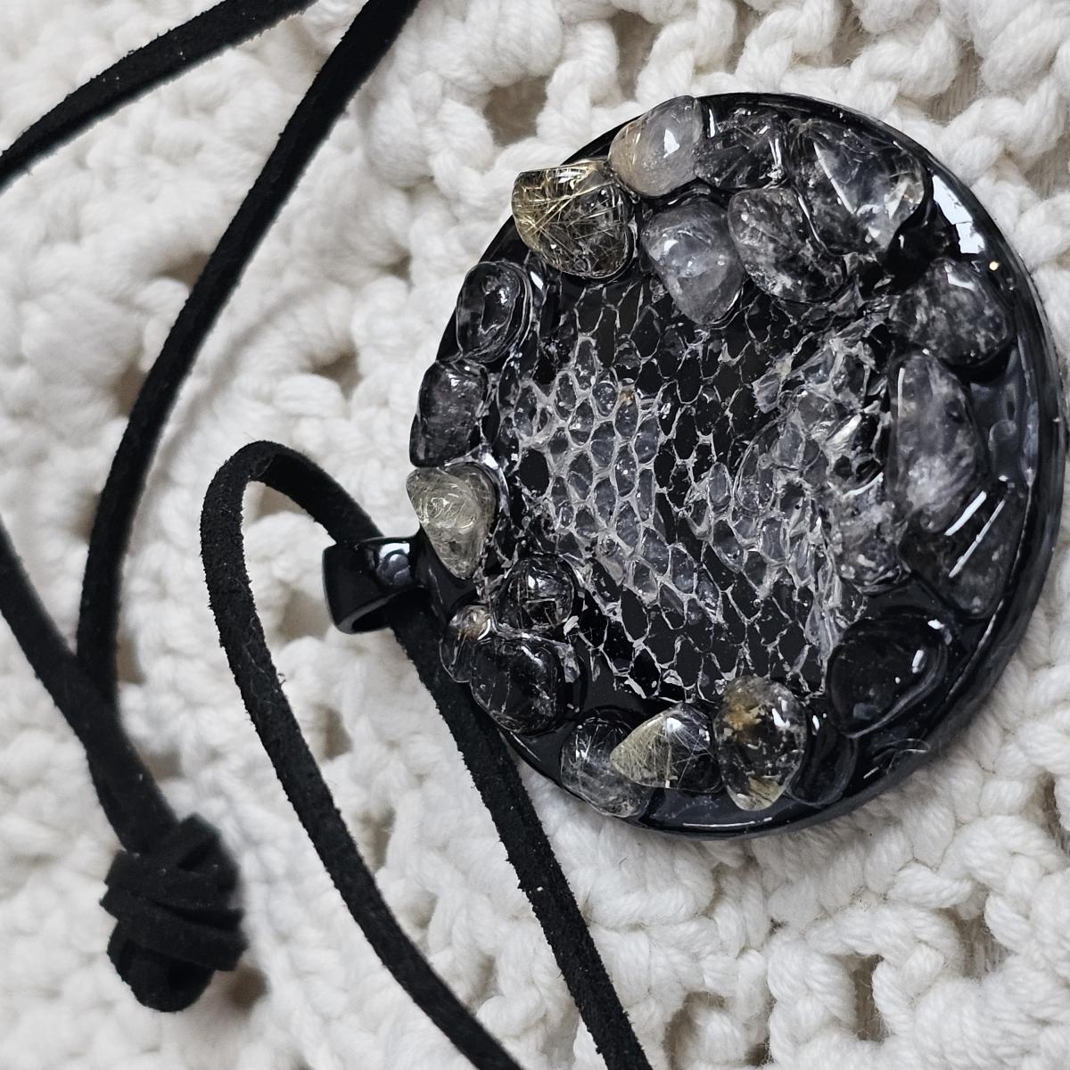 Материал изделия: нержавеющая сталь. Цвет кулона - чёрный. Размер кулона 4х4 см. Длину шнурки из замки чёрного цвета можно регулировать. Вставка: выползок камень агат.