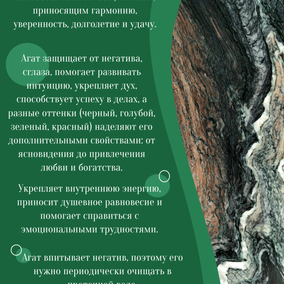 Агат - сильный оберег от сглаза, порчи, энергетических вампиров и негативных влияний. Повышает уверенность в себе, укрепляет внутреннюю силу, проявляет у владельца лидерские качества.