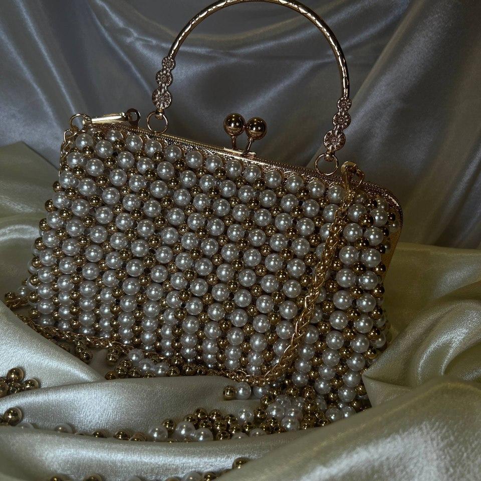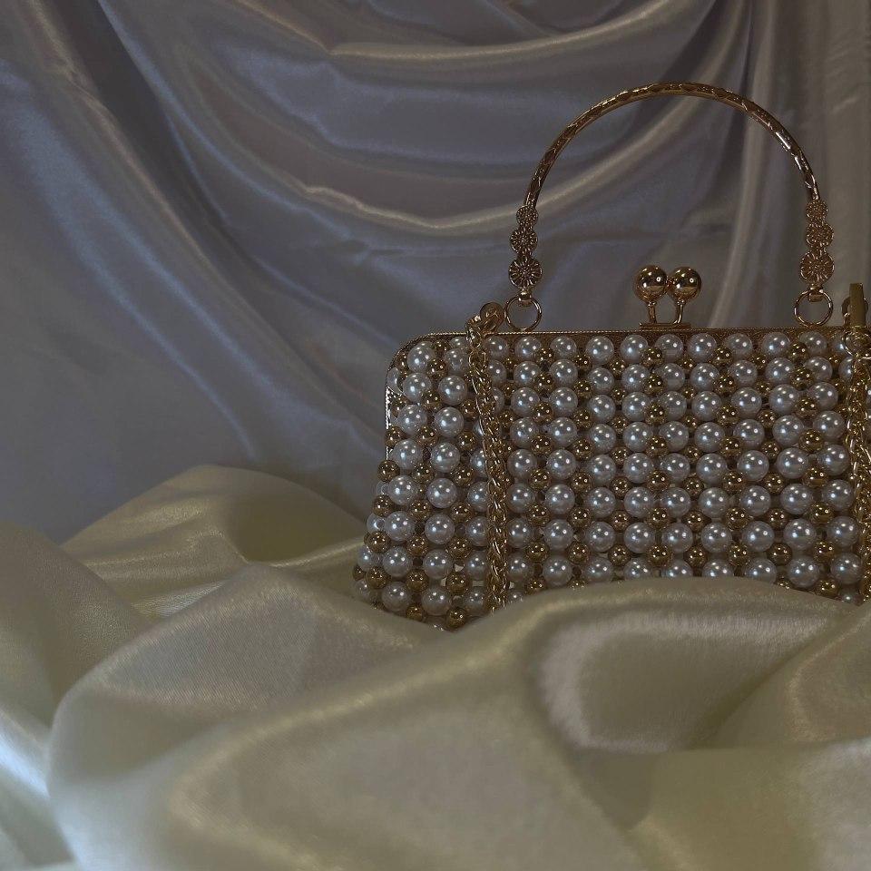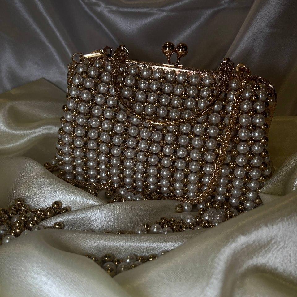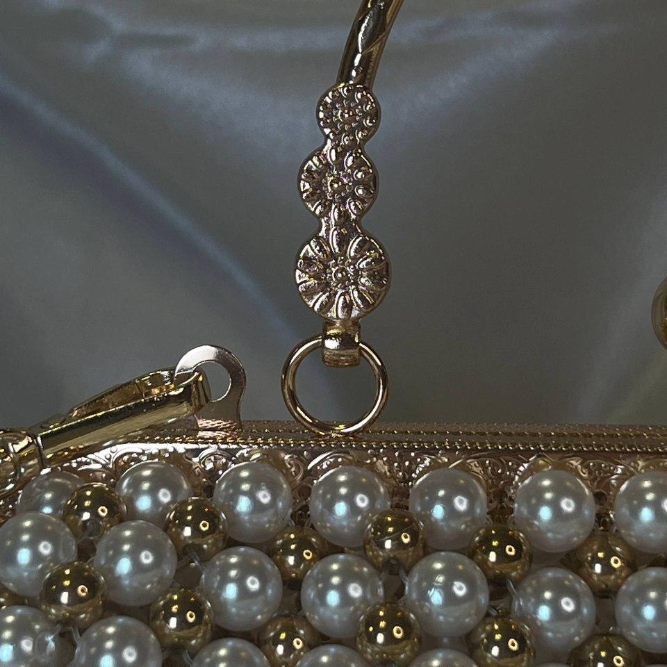 Жемчуг под золото, в дополнении с белыми бусами перламутровым отливом, делают образ гомоничным, привлекающим внимание.