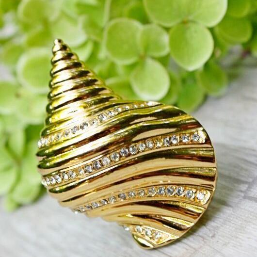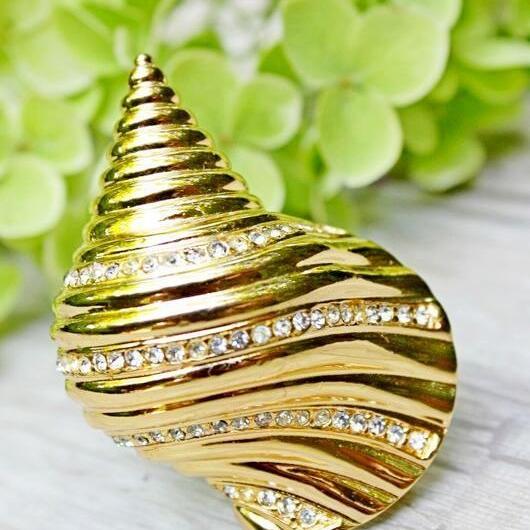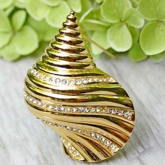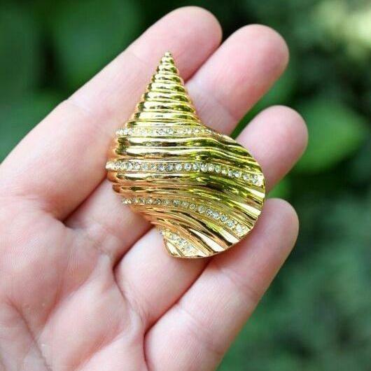 Очень красивая, изящная брошь 1960-х годов, от Christian Dior. Изготовлена из ювелирного сплава, позолоты и кристаллов Сваровски. Брошь объемная и очень похожа на настоящую ракушку. Маркирована. Отличное состояние. Кристаллы яркие и чистые, позолота без изъянов. Все пятна- блики.