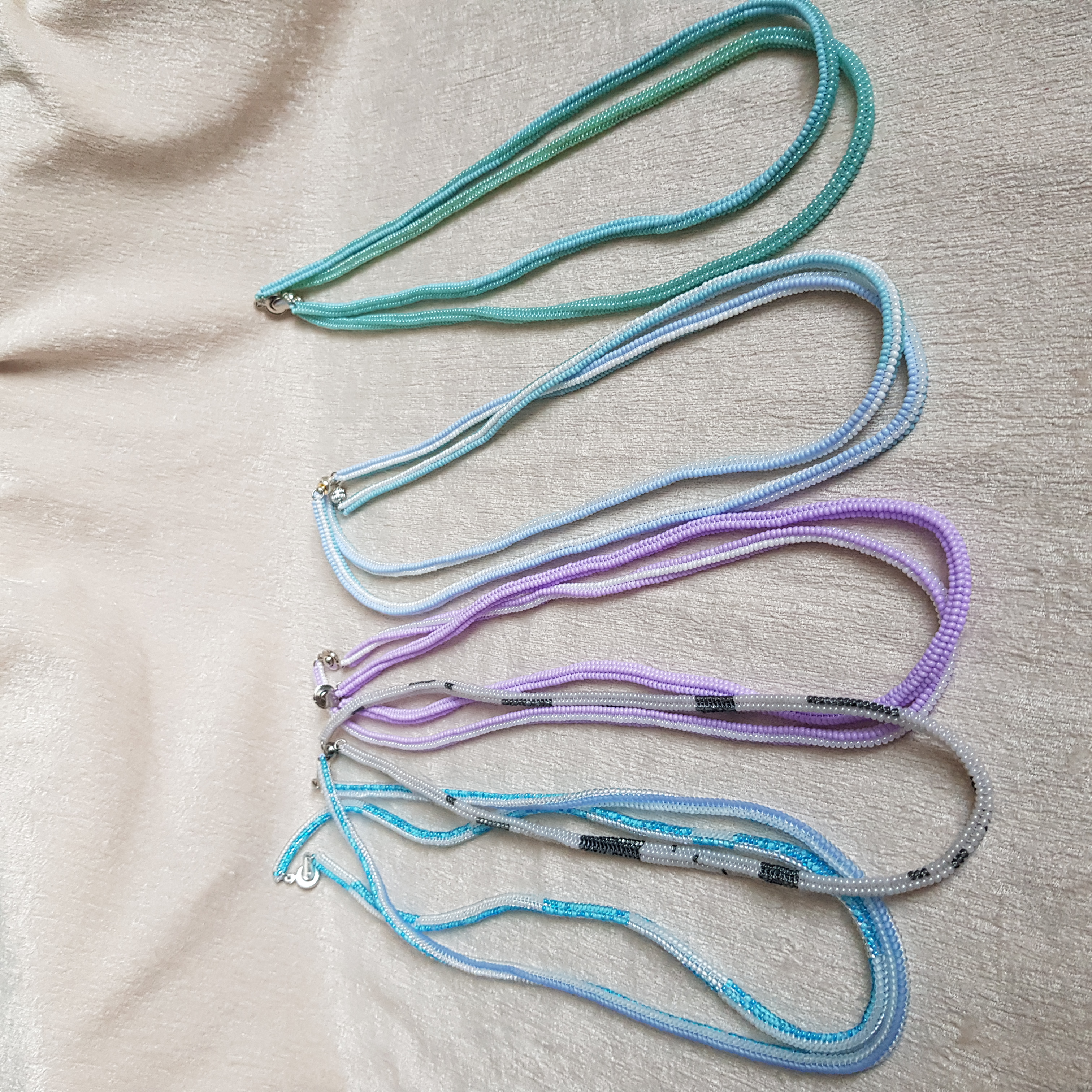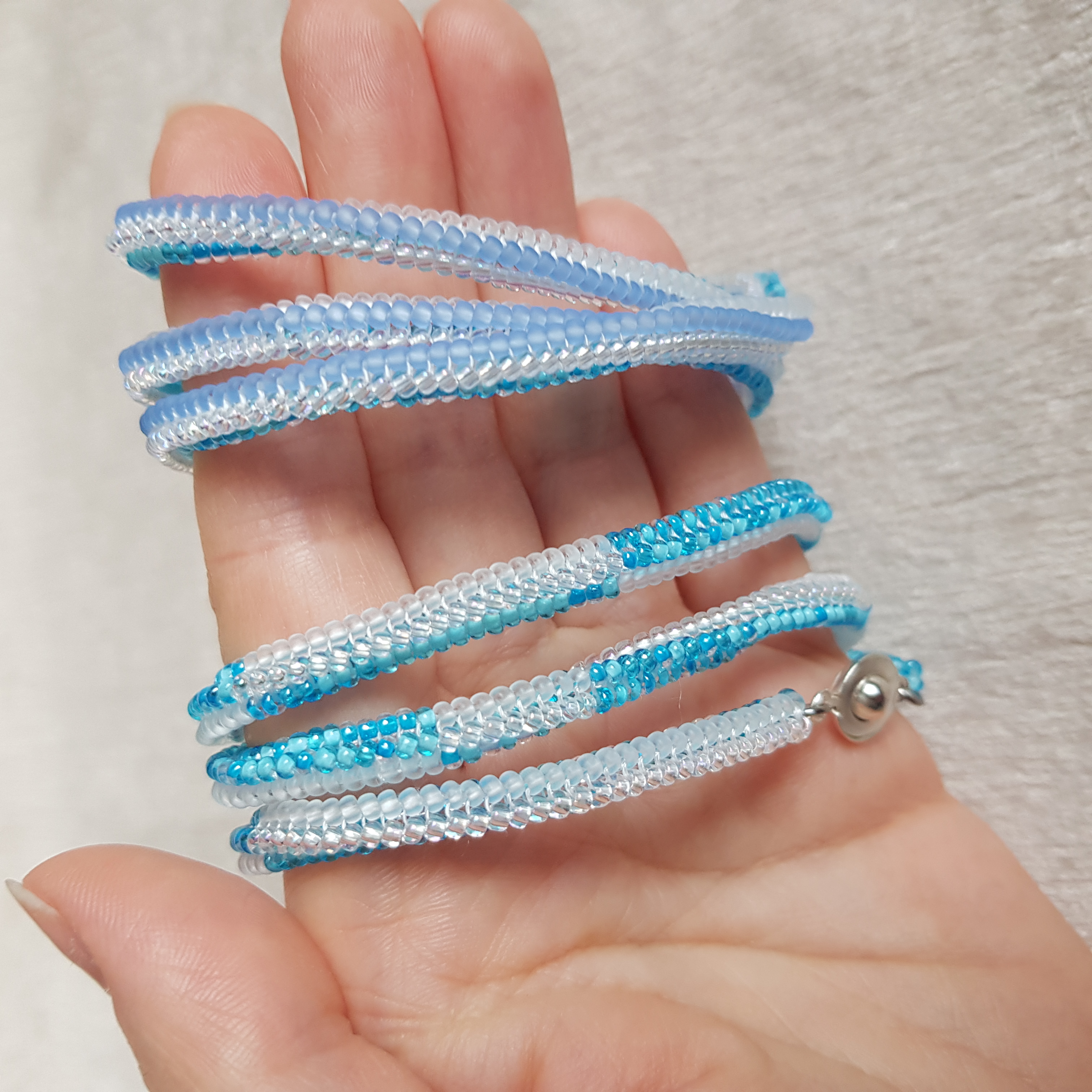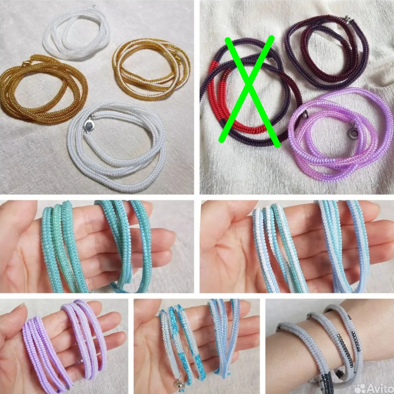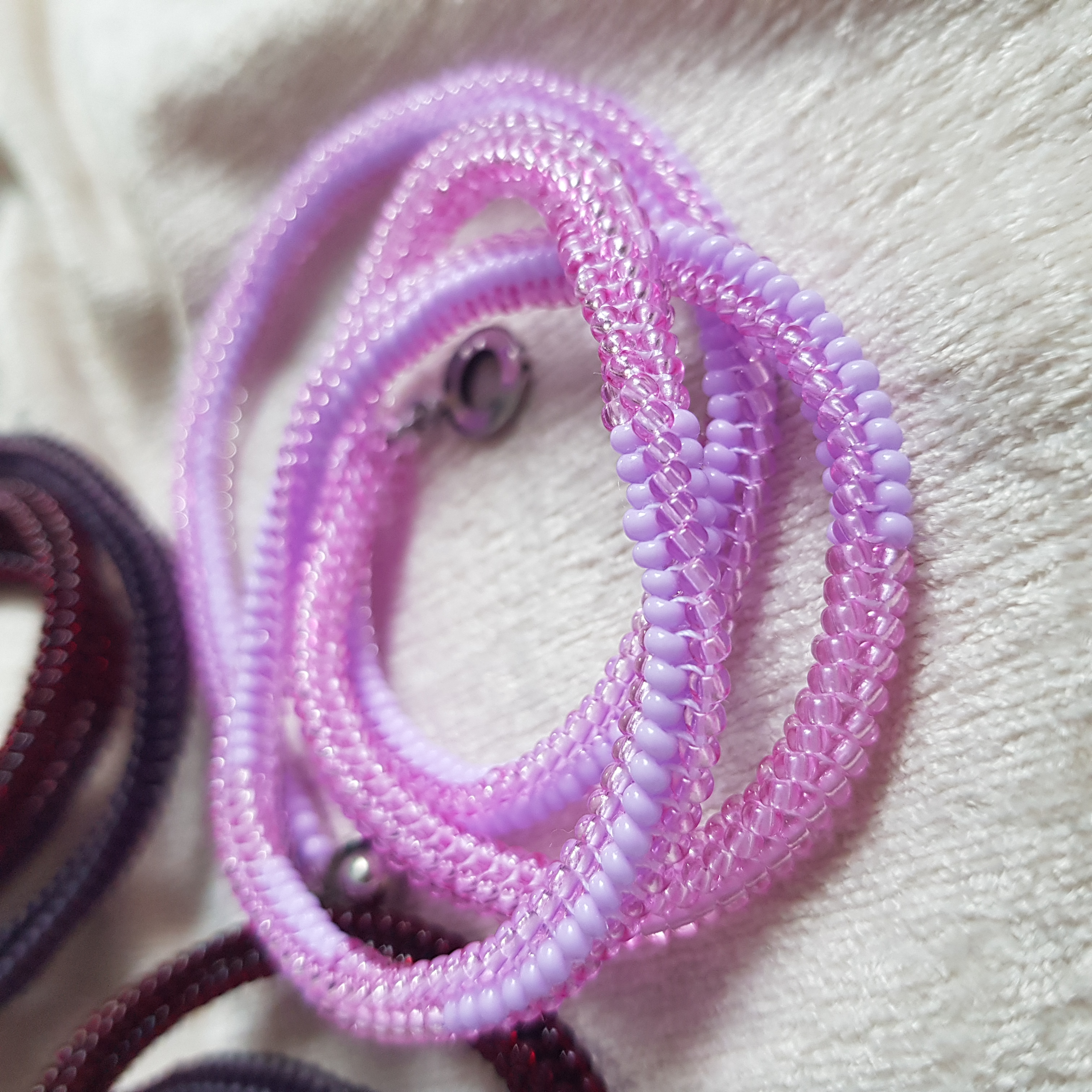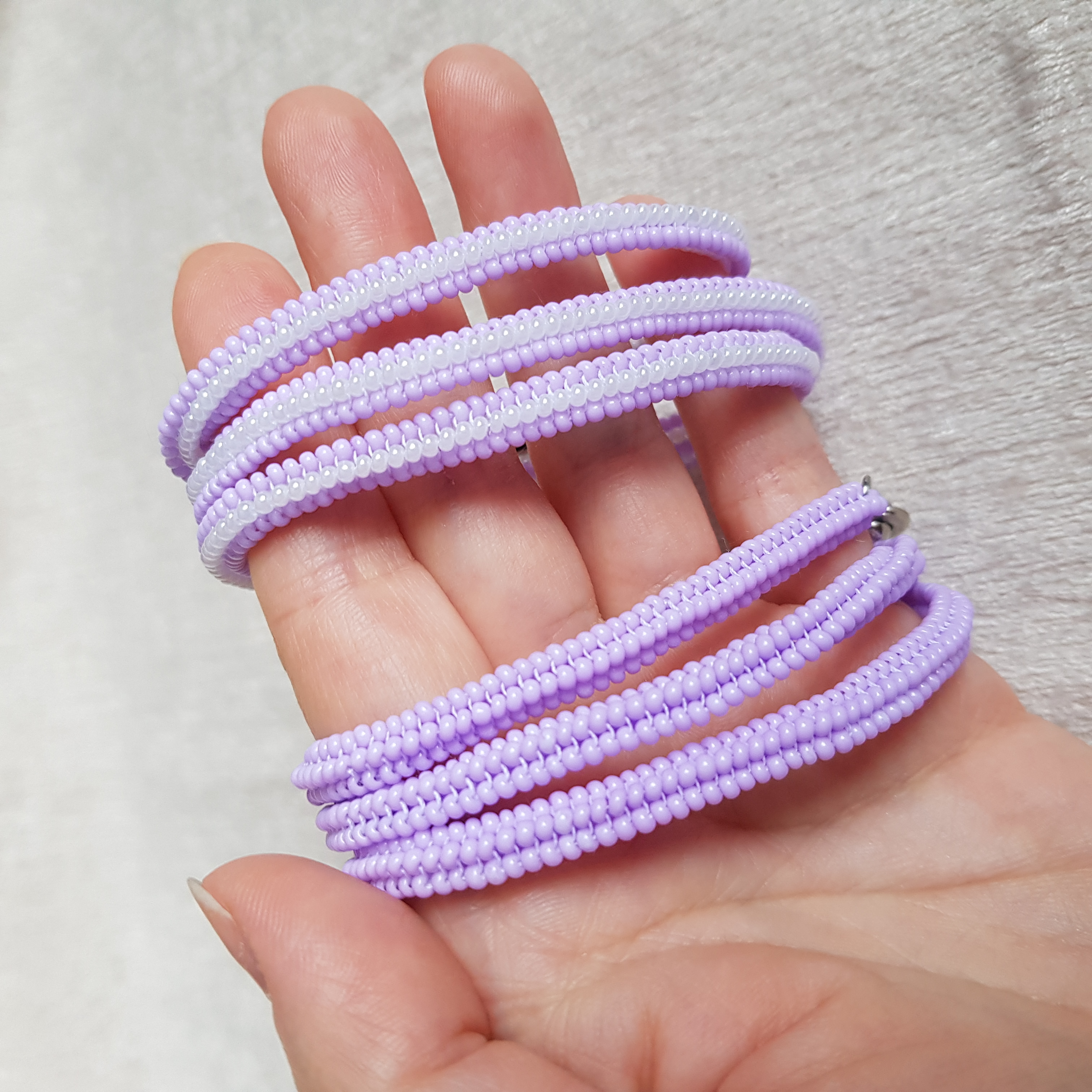 У браслетов замки карабины с цепочкой для регулирования длины.