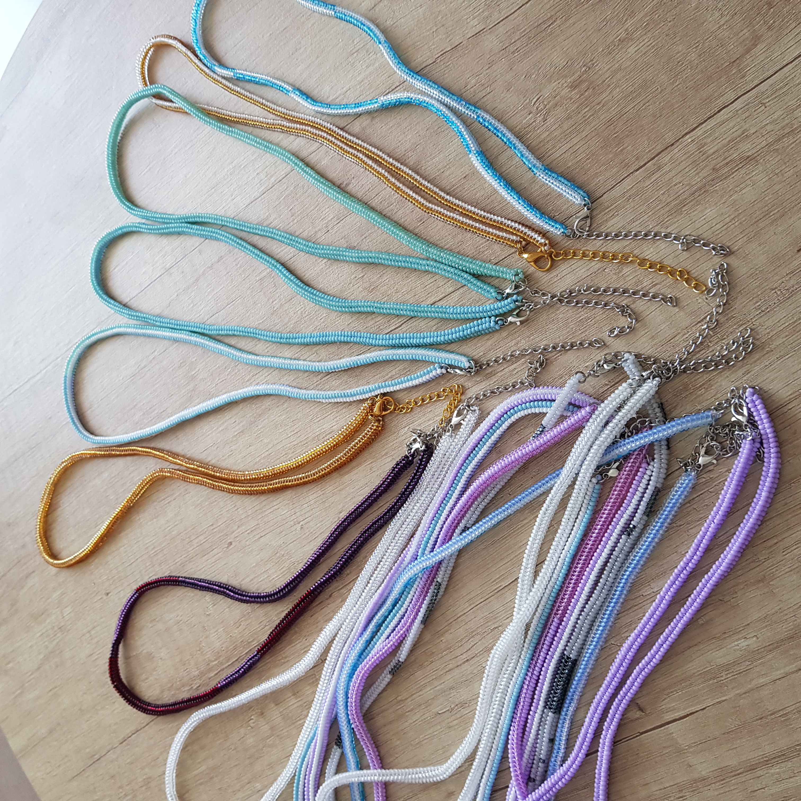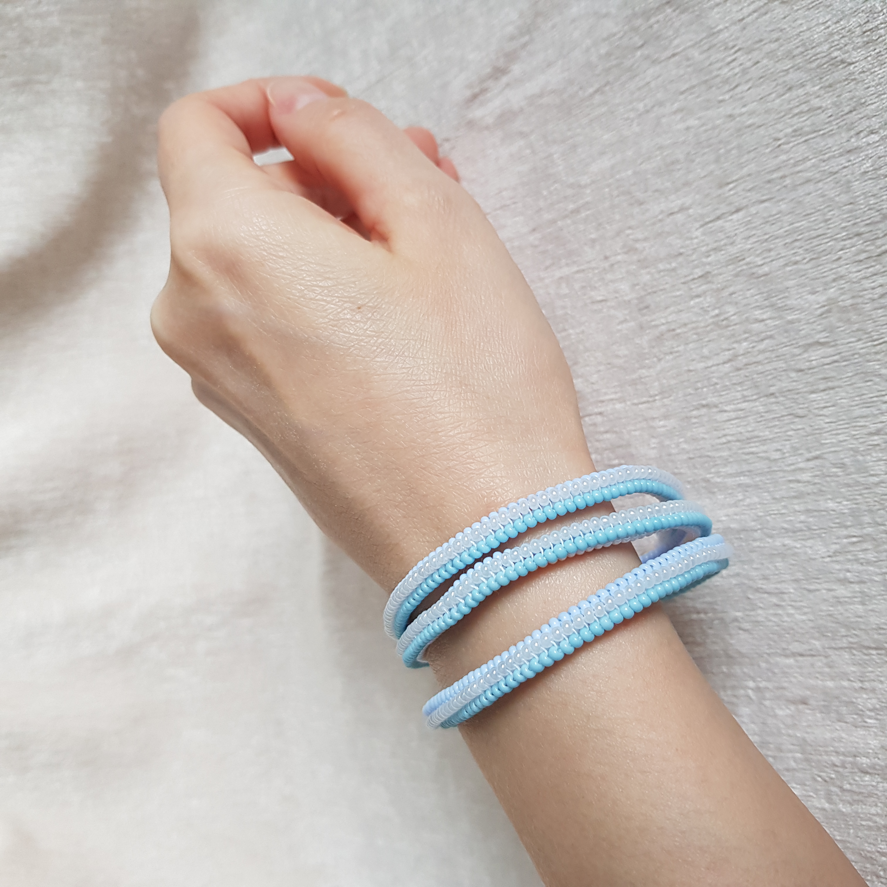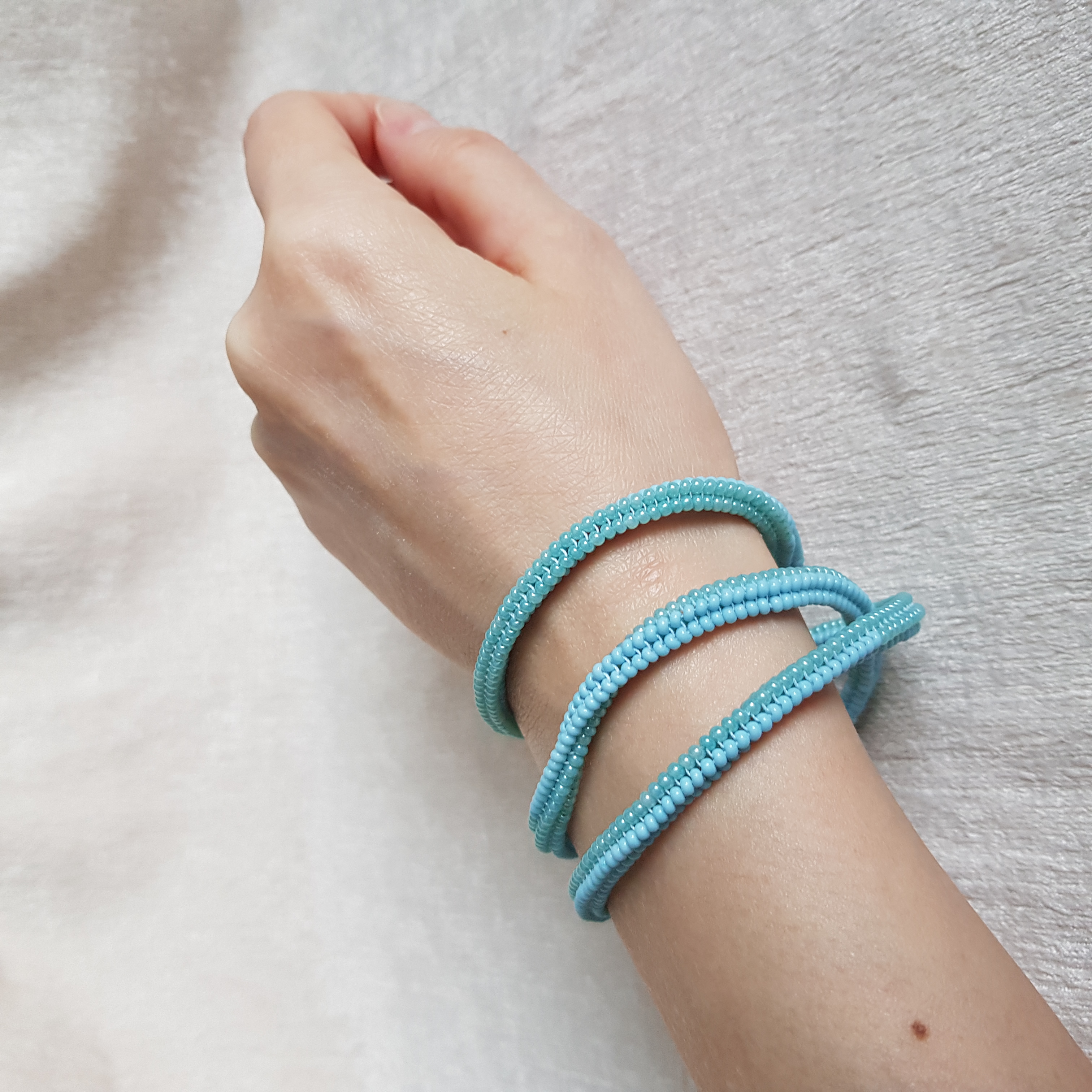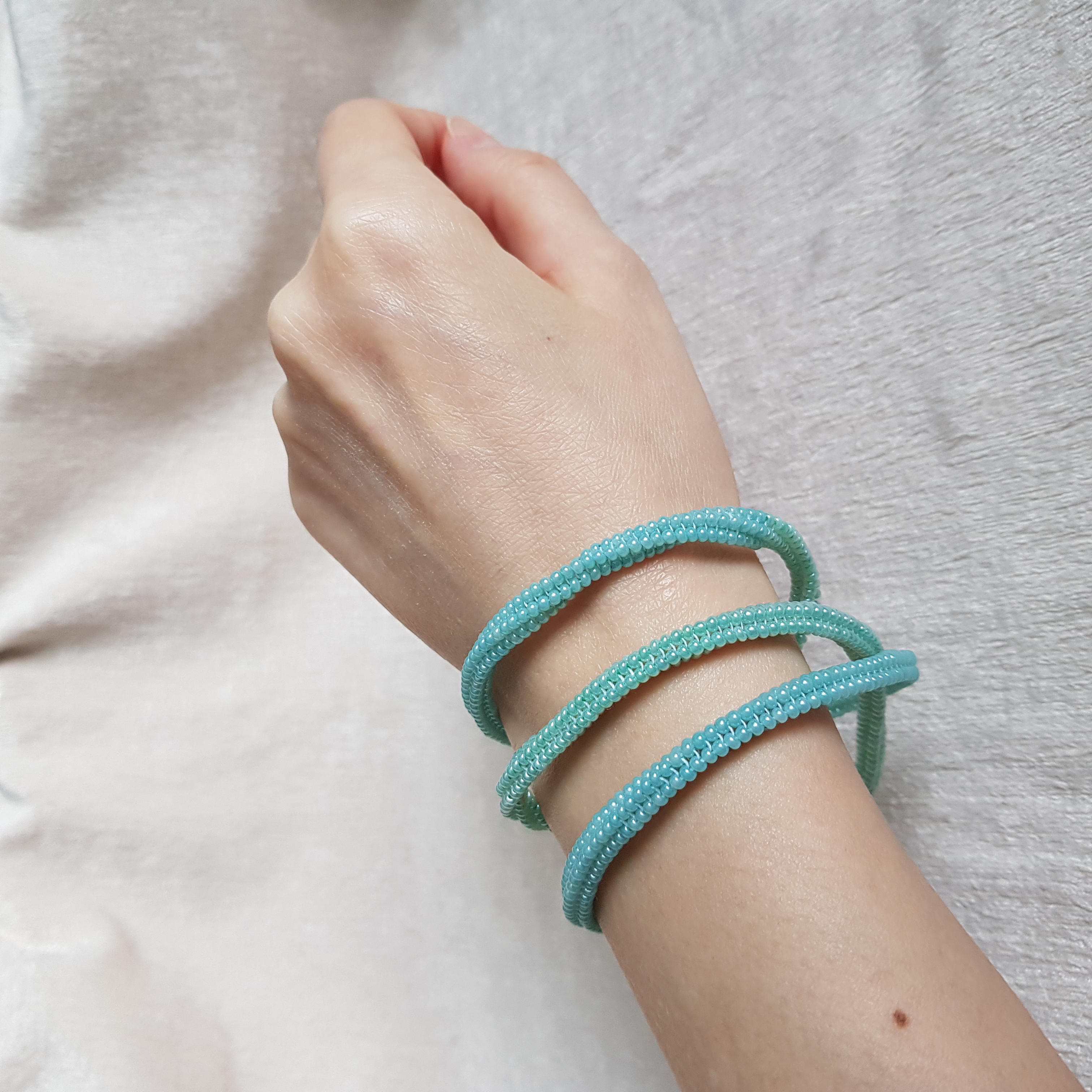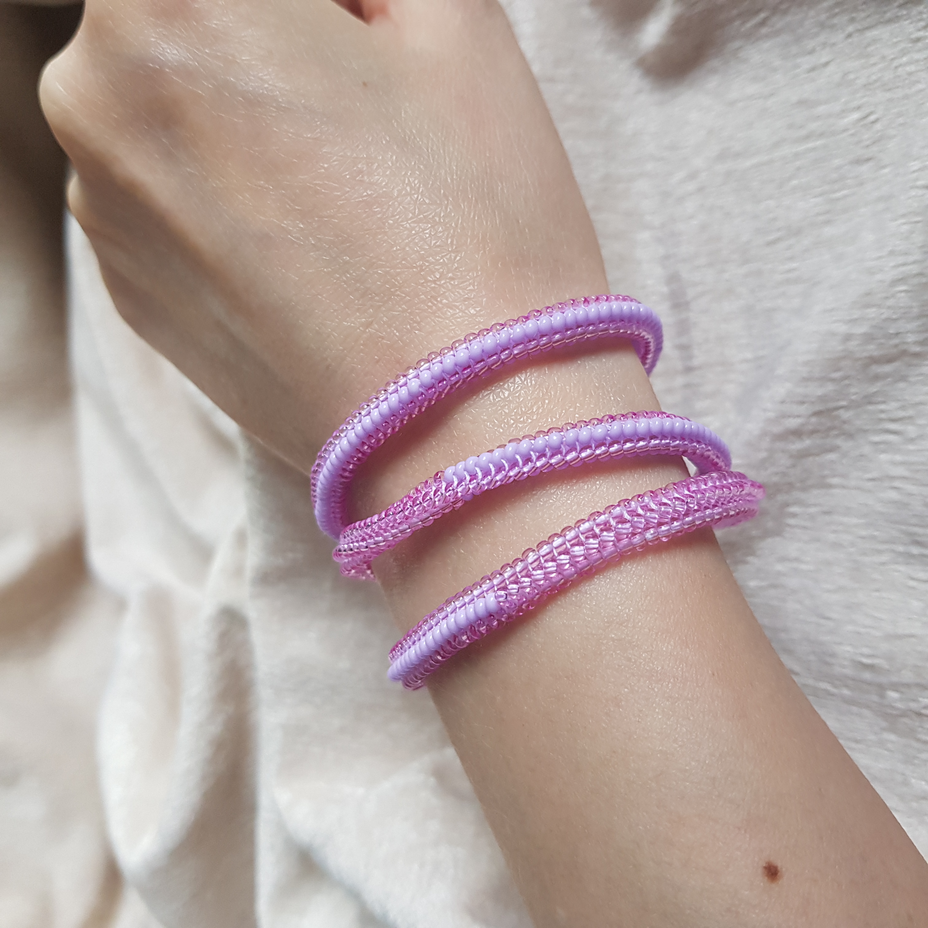 У браслетов замки карабины с цепочкой для регулирования длины.