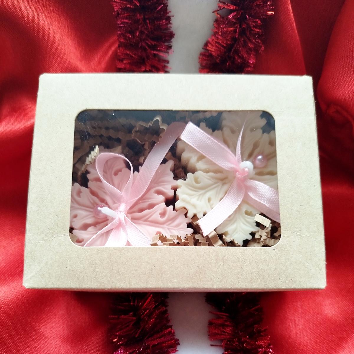 * две снежинки 6*2,5 см восковые.
