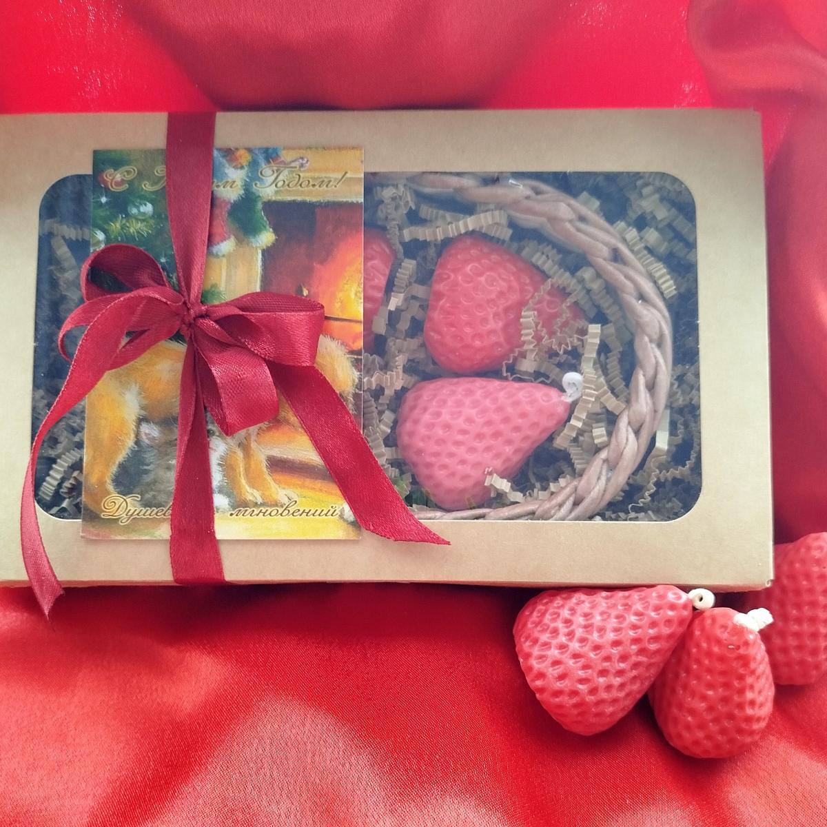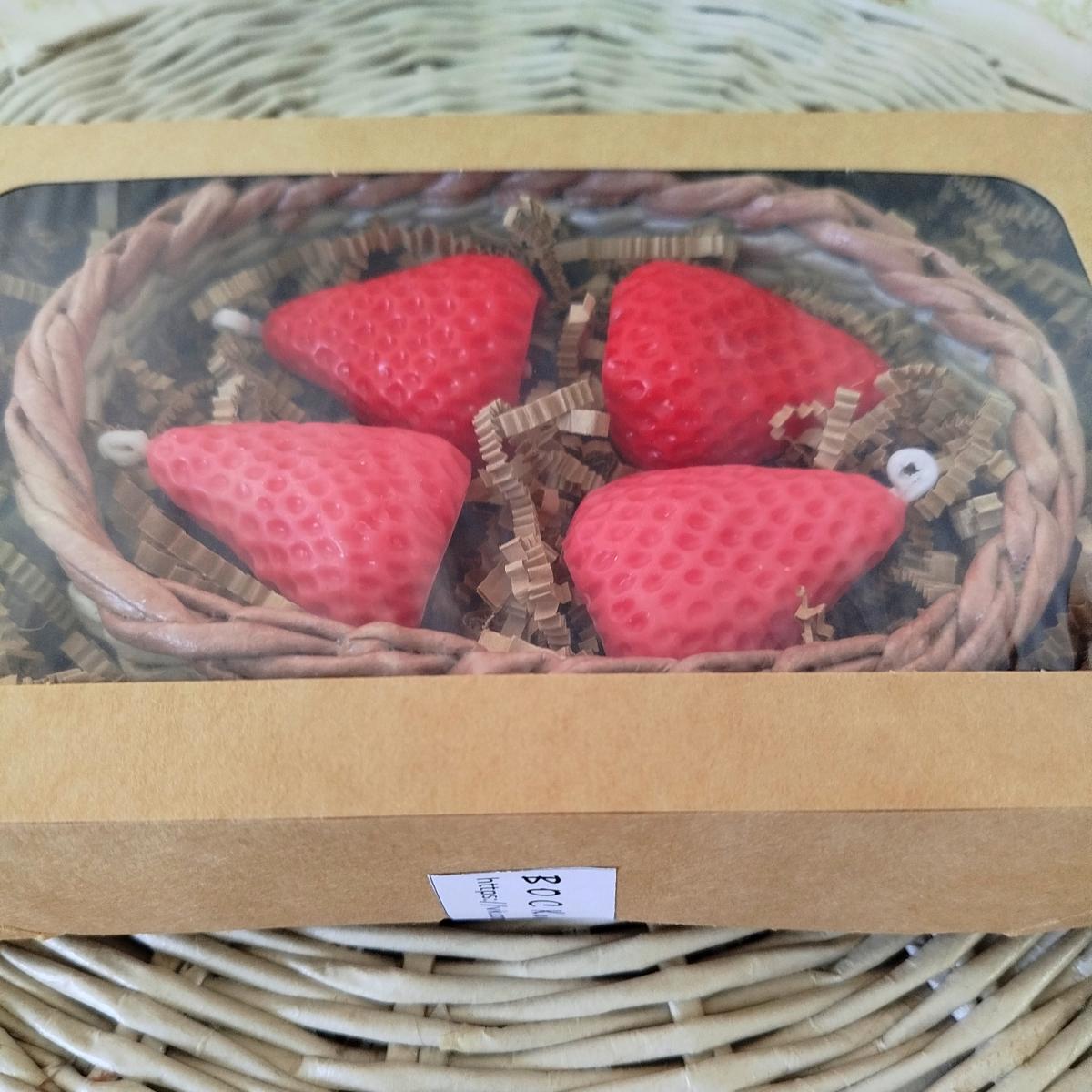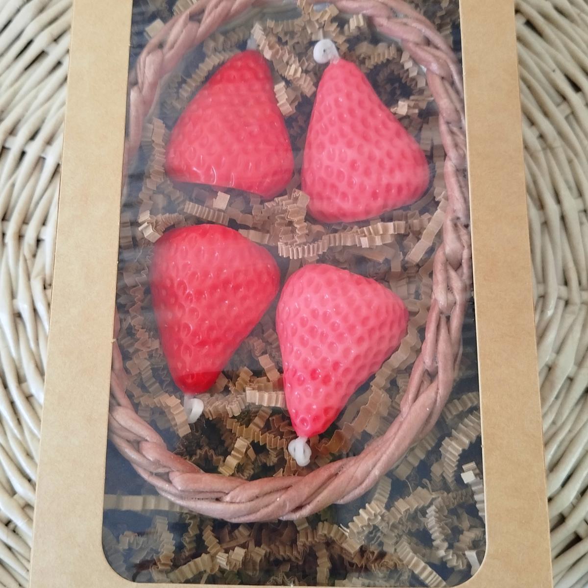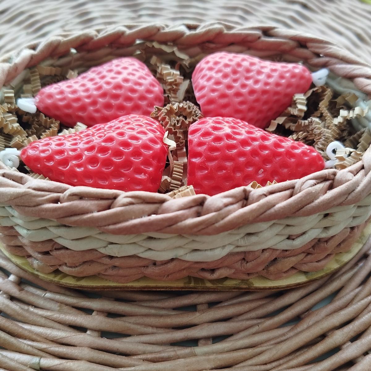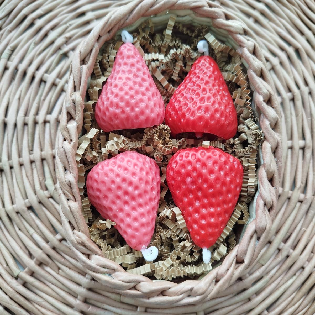 восковые свечи КЛУБНИКА 4 шт (4*4,5 см) - можно использовать на праздничный торт.