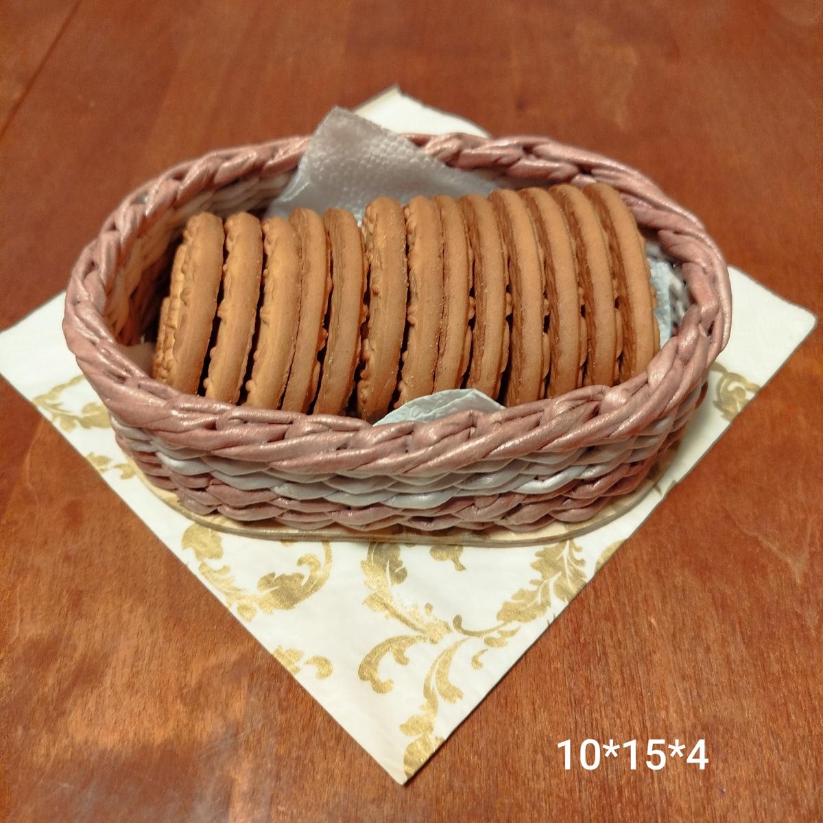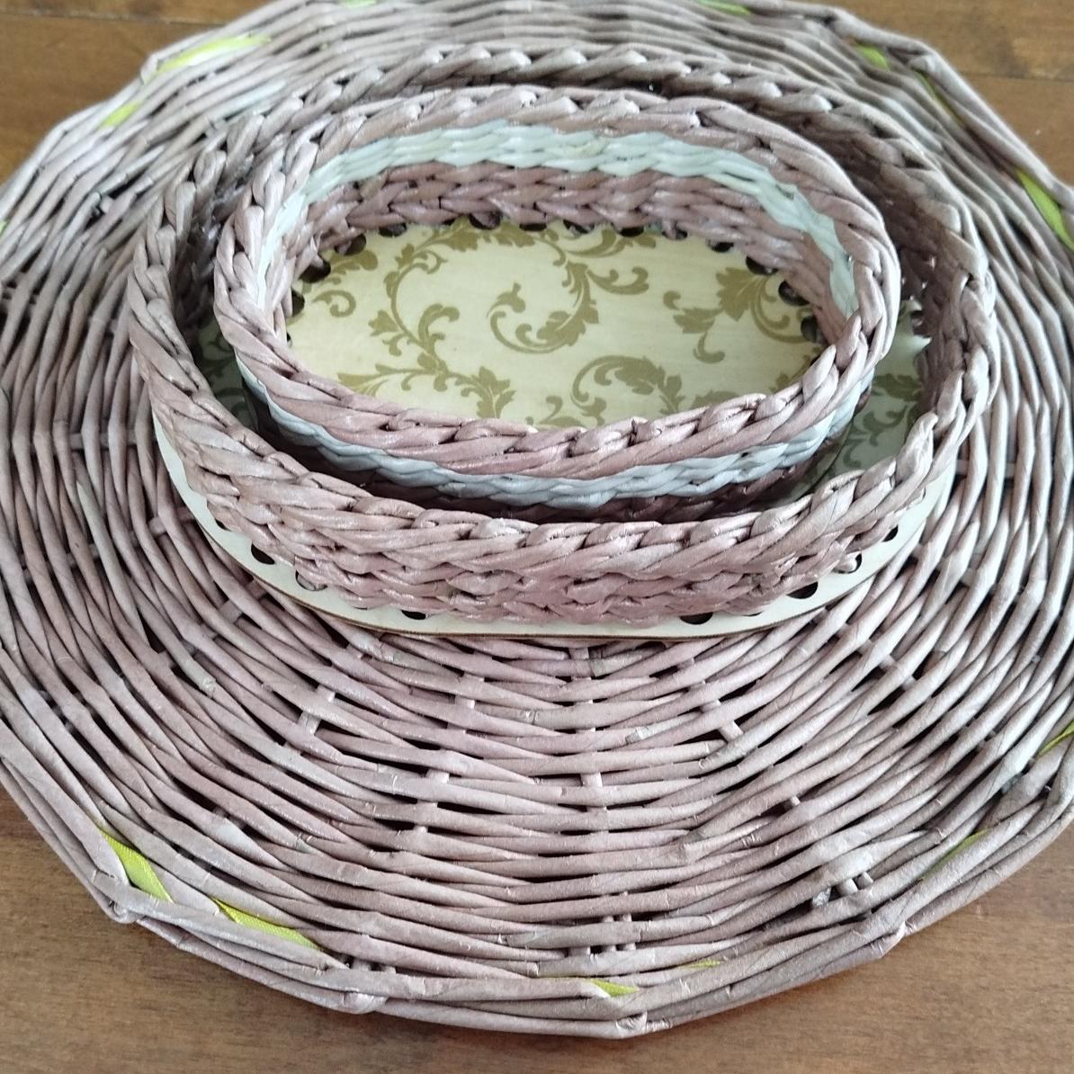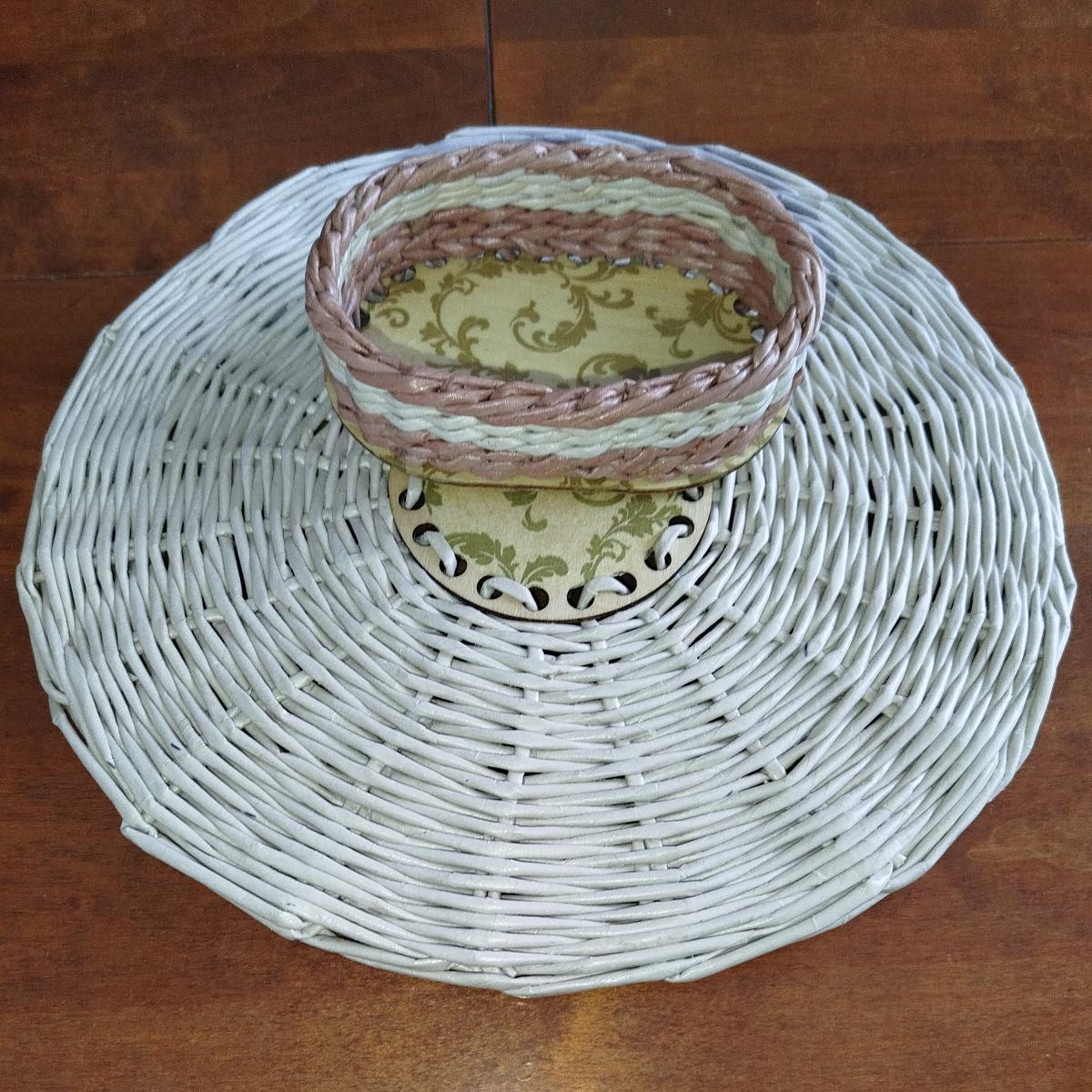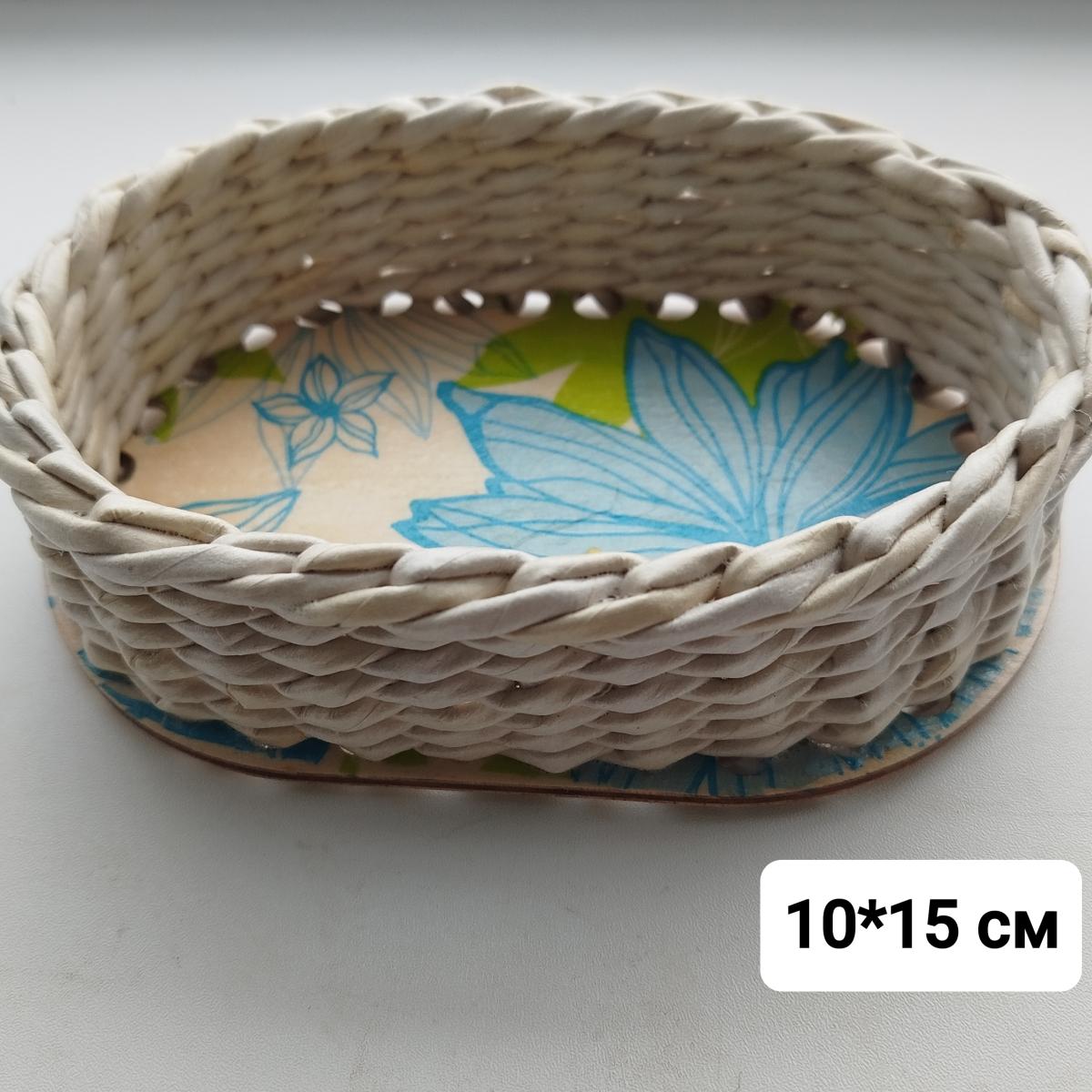 ПЛЕТЕНКА из бумажной лозы с фанерным дном 10*15 см;