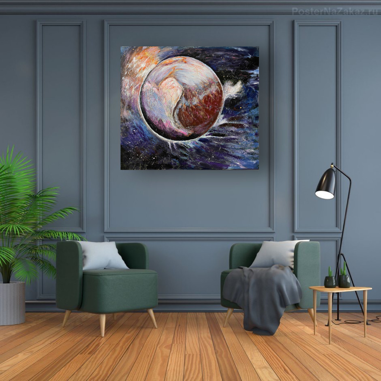 Картина на холсте подходит практически в любой интерьер, сочетание темных и светлых оттенков. Стойкие материалы. Подвесы установлены, галерейная окраска (не обязательно оформлять в раму, боковины закрашены в тон картины), можно сразу развешивать в любом помещении. Размер холста 80 на 90 см.