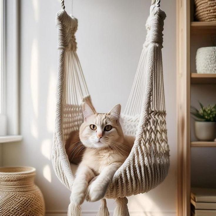 2. Компактность. Гамаки занимают мало места и могут быть установлены практически в любом уголке дома. Их можно повесить на стену, закрепить на двери или поставить рядом с любимым местом питомца.