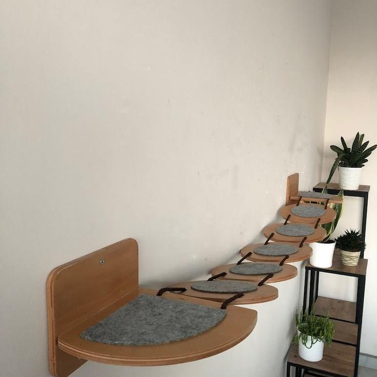 3. Высота. Оптимальная высота зависит от размера вашего питомца. Однако помните, что кошки любят забираться высоко, поэтому чем выше лесенка, тем лучше.