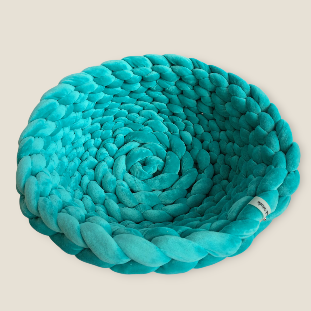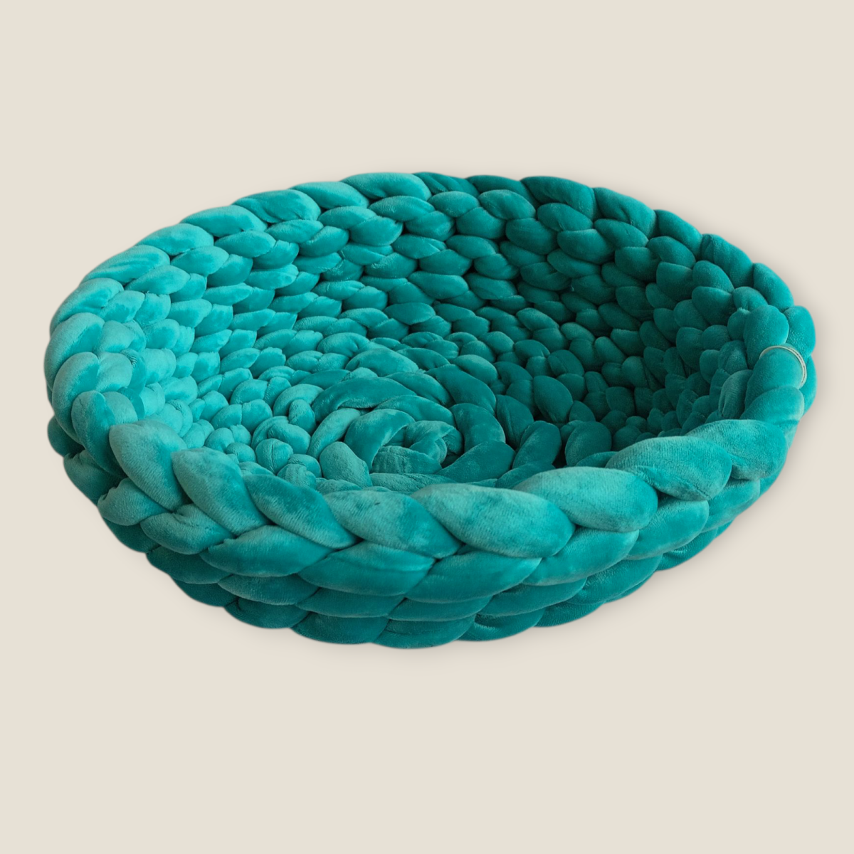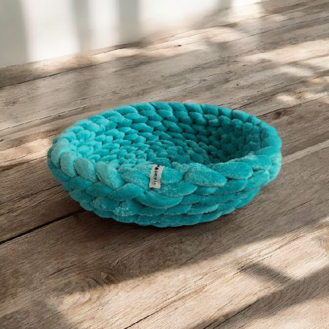 Лежанка круглая вязаная для кошек и собак мелких пород, 45 см, мягкая, уютная, ручная работа. Изготовлена из мягкой бархатной ткани с синтепоновым наполнителем.